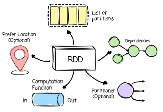 RDD (Resilient Distributed Dataset) واحد بنیادی داده در اسپارک است. میتوان آن را به صورت زیر توصیف کرد:
