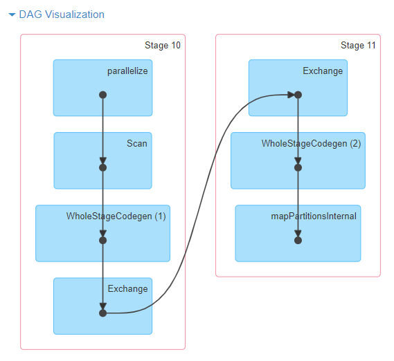 مثال visualisation DAG برای عملیات sc.parallelize(1 to 100).toDF.count()
